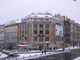 The traditional Czech department store Bila Labut (White Swan) at the top end of Wenceslas Square in Prague. Picture, information, and directions.  See more